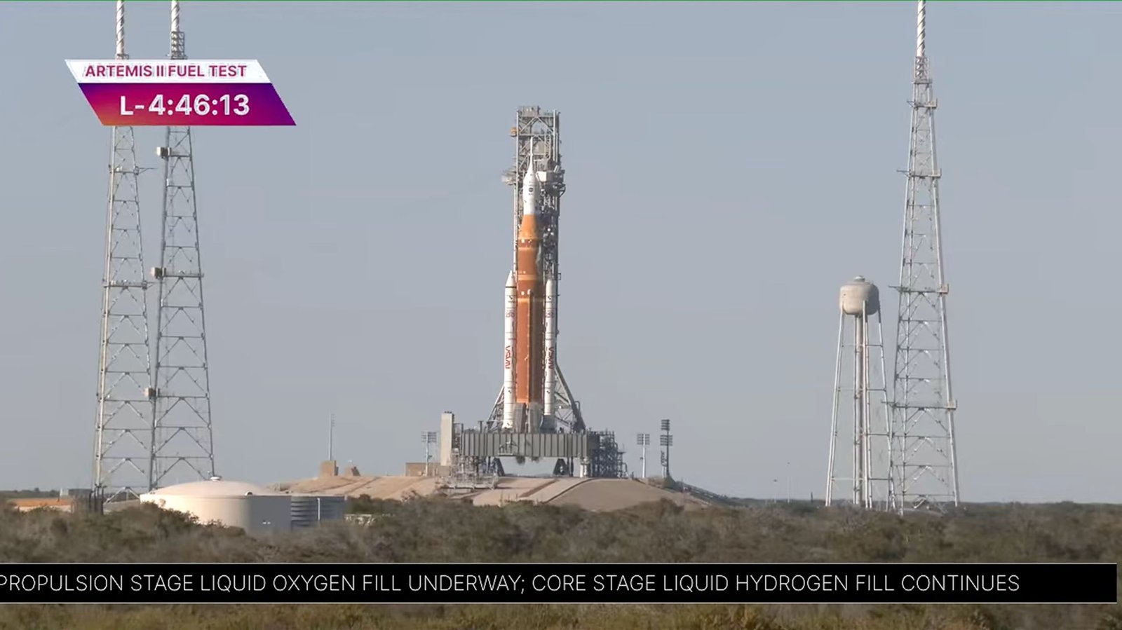 A agência espacial hoje (2 de fevereiro) Ártemis 2 missionário sistema de lançamento espacial Foguete (SLS), carregando mais de 700.000 galões (2,65 milhões de litros) de hidrogênio líquido criogênico (LH2) e oxigênio líquido (LOX) em um veículo de dois estágios localizado na plataforma de lançamento 39B Centro Espacial Kennedy (KSC) na Flórida.