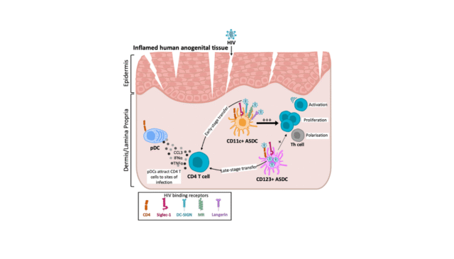Investigadores do Instituto Westmead de Investigação Médica da Universidade de Sydney fizeram progressos significativos na compreensão de como as células imunitárias recentemente descobertas estão envolvidas na transmissão sexual do VIH. O estudo, liderado pela Dra. Najla Nasr, concentrou-se em um tipo especial de célula dendrítica chamada AXL+ SIGLEC6+ células dendríticas (ASDC). Crucialmente, a equipa do Dr. Nasr demonstrou pela primeira vez que estas células estão presentes no tecido reprodutivo humano inflamado, o local real onde o VIH entra no corpo, e que desempenham um papel crucial nas primeiras fases da transmissão do VIH. Dado que atualmente se sabe que a transmissão do VIH está altamente associada à inflamação, isto representa uma peça crítica que faltava na nossa compreensão de como este vírus se espalha.