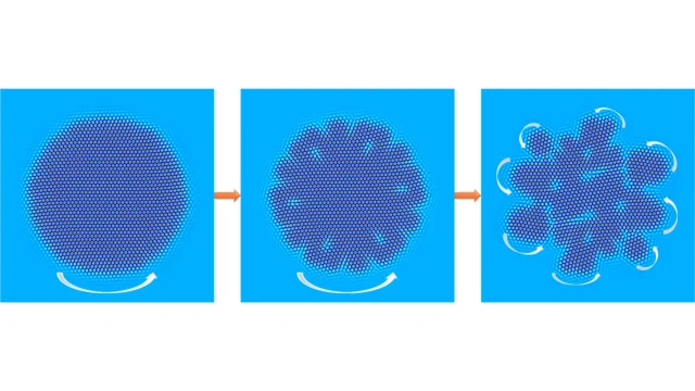 Pode parecer inacreditável, mas os cristais feitos de partículas giratórias são reais. Uma equipe de físicos de Aachen, Düsseldorf, Mainz e Wayne State University (Detroit, EUA) explorou esses materiais incomuns e seu comportamento extraordinário. Esses cristais quebram-se facilmente em fragmentos individuais, formam contornos de grãos incomuns e apresentam defeitos estruturais controláveis. Publicado em ” Anais da Academia Nacional de Ciências (PNAS)Os pesquisadores propõem uma ampla estrutura teórica que prevê várias novas propriedades desses sistemas chamados de “interação lateral”.