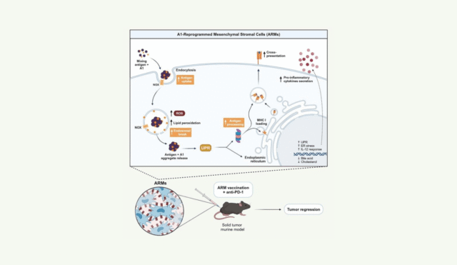 Ao aproveitar o Accum® Tecnologia, Dr. Rafei e sua equipe geraram Accum® A variante (denominada A1) foi capaz de induzir uma apresentação cruzada de antígeno eficiente em MSCs. Quando testadas em animais, essas células mostraram resultados promissores no acionamento do sistema imunológico para combater as células cancerígenas. “Coletivamente, nossos dados indicam que A1 desempenha um papel central em vários processos relacionados à apresentação cruzada, como captação de antígeno, escape para o citoplasma e subsequente processamento pela maquinaria proteasomal”, observou o Dr. Rafei. Ao examinar vários processos moleculares, descobriu-se que A1 desencadeia a produção de espécies reativas de oxigênio dentro dos endossomos, levando à ruptura da membrana endossomal através da peroxidação lipídica. Dr. Rafei e sua equipe também estudaram como A1 afeta MSCs e descobriram mudanças em múltiplas vias biológicas, incluindo resposta ao estresse celular e metabolismo, bem como a liberação de mediadores pró-inflamatórios. A soma dessas observações os levou a chamar a vacina um1-certoprogramação eletrônicatamanho médioSC(ARM). “As células ARM induzem respostas antitumorais potentes, como mostrado em uma série de estudos de vacinação em animais com tumores sólidos pré-estabelecidos. Esta abordagem inovadora resultou em um grande número de animais apresentando respostas completas (por exemplo, erradicação do tumor)”, explicou ainda o Dr. O seu estudo não só propõe um modelo de vacinação alternativo utilizando MSCs como alicerce, mas também demonstra como a vacina ARM poderia encaixar-se na criação de uma gama mais ampla de vacinas contra o cancro visando uma variedade de outras indicações.
