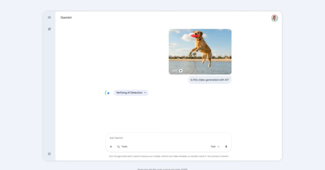 Google expande Gemini AI recurso de verificação para vídeo criado ou editado com os próprios modelos de IA da empresa. Os usuários agora podem pedir ao Gemini para determinar se um vídeo enviado foi criado pela IA perguntando: “Isso foi criado usando a IA do Google?”