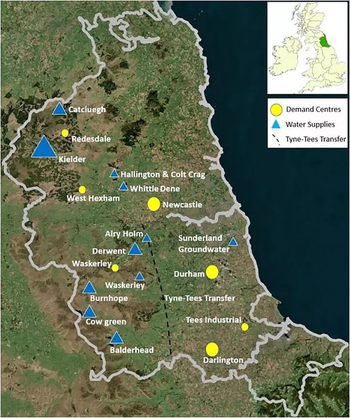 Eles usaram esta estrutura para avaliar os impactos climáticos iniciais de um hipotético esquema IBT que transportaria água do reservatório de Kelder, no nordeste da Inglaterra, para Londres, no sudeste. Eles disseram: “Esta escolha foi feita porque o reservatório de Kielder é o maior reservatório do Reino Unido e está localizado em uma das áreas com menor escassez de água do Reino Unido.”