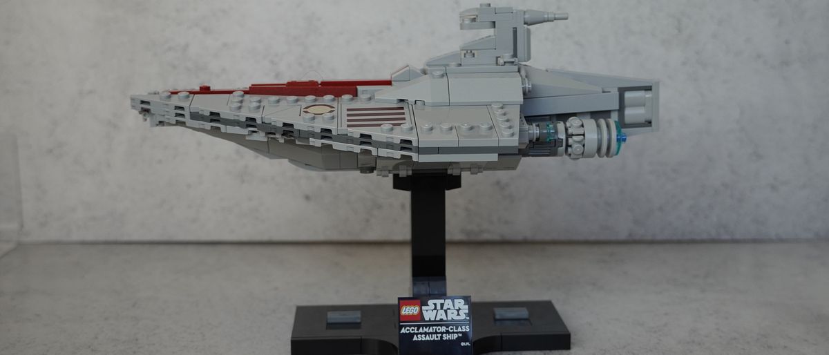 Depois de montado, é resistente o suficiente para ser retirado do suporte e balançar pela sala, ou você pode colocá-lo no suporte e deixá-lo ocupar um lugar de destaque em uma prateleira. Achamos que este é um deles O melhor LEGO Star Wars está disponível, e demos 5 de 5 estrelas em nossa análise do navio de assalto da classe LEGO Star Wars Acclamator.