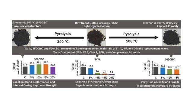 “Até certo ponto, o concreto contendo materiais à base de café tratado em temperaturas mais baixas torna-se mais resistente à medida que adicionamos mais materiais à base de café”, explica o Dr. Roychand. “Depois disso, os benefícios começam a se estabilizar, mas o desempenho geral do concreto ainda é bom”. Isso significa quanto material de café deve ser usado para obter os melhores resultados.
