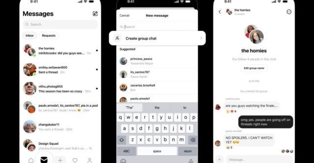 Meta é adicionando bate-papos em grupo a Threadspermite que os usuários enviem mensagens para vários amigos em uma conversa compartilhada em vez de enviar mensagens diretas separadas. Os usuários do Threads podem criar bate-papos em grupo iniciando uma nova mensagem e adicionando até 50 pessoas que seguem sua conta do Threads. Os nomes dos bate-papos em grupo podem ser personalizados para serem identificados mais facilmente por tópico ou participante, semelhante à função de mensagens em grupo do Facebook Messenger.