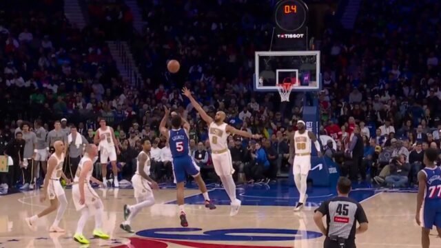 Quentin Grimes levanta do meio da quadra e treina na campainha para encerrar o terceiro quarto do Celtics-76ers, com cobertura ao vivo na NBC e no Peacock.