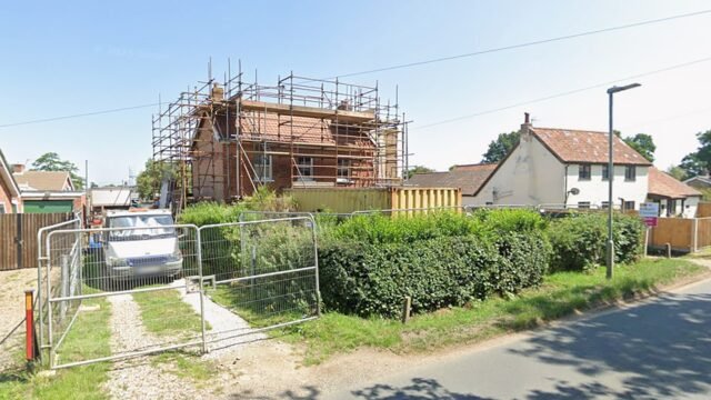 A propriedade, conhecida localmente como ‘Scaffold House’, fica em Letton Road, em Shipdham, Norfolk, e está no centro de uma amarga disputa de planejamento desde 2020.
