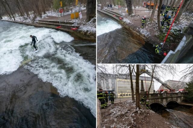 FRANKFURT, Alemanha – O debate sobre como trazer de volta o surf no famoso English Garden da Alemanha aumentou no domingo depois que funcionários da cidade removeram uma viga colocada secretamente no Natal para recriar uma onda surfável no rio que atravessa o parque.