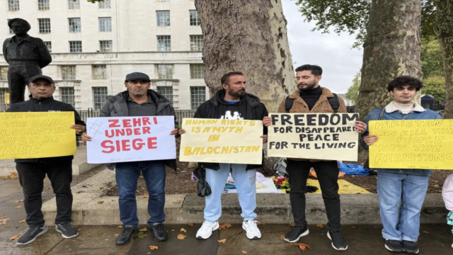 membros balúchi A diáspora no Reino Unido (UK) realizou um protesto em frente ao número 10 de Downing Street, Londres, condenando veementemente as ofensivas militares em curso do Estado paquistanês no Baluchistão e chamando a atenção para o recente aumento da violência, especialmente na área de Zehri, no distrito de Khuzdar, informou a agência de notícias ANI.