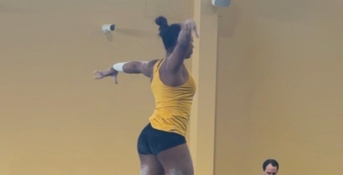A sessão de treinos abertos/intrasquad de sábado contou com treinos de salto – vi barras de Olivia Kelly, Ayla Acevedo (duas vezes!) e apenas um pouco de footwork de Railey Jackson – trave e barras antes de passar para um formato mais competitivo com dois conjuntos de configurações de seis para cima para experimentar algumas variações diferentes. Alguns juízes duros estavam presentes – parecia ser uma combinação da comissão técnica e Kennedy Griffin na trave (eu não conseguia ver as barras marcando, na maioria das vezes).