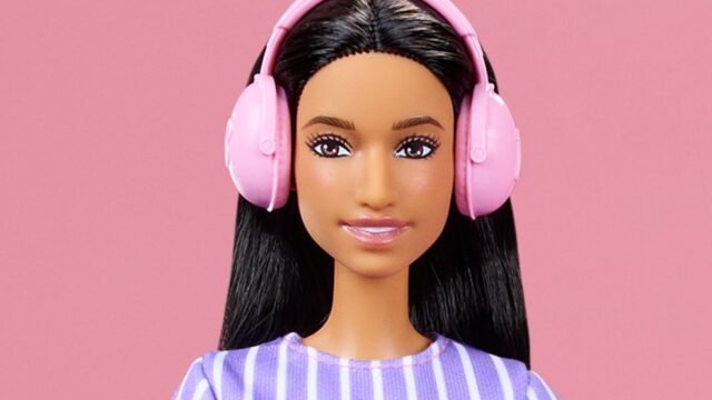,Os fones de ouvido da boneca representam como eles podem reduzir a sobrecarga sensorial, bloqueando o ruído de fundo.Crédito: ©2025 Mattel, Inc.