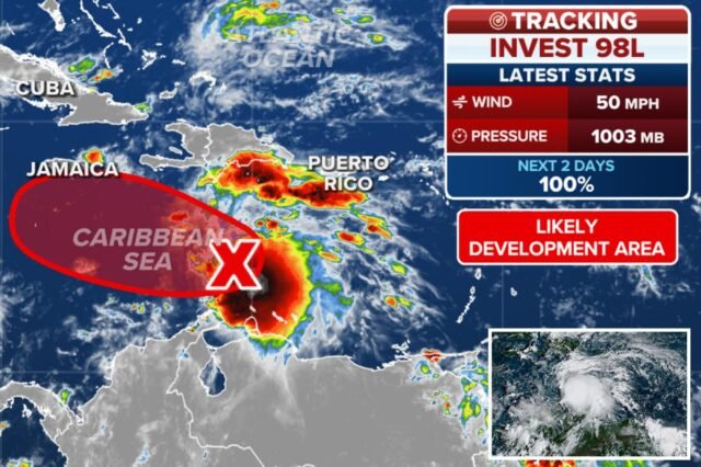 A tempestade tropical Melissa, originalmente designada como Invest 98L, deverá continuar a se fortalecer e se tornar um furacão à medida que percorrer o Caribe central nos próximos dias.