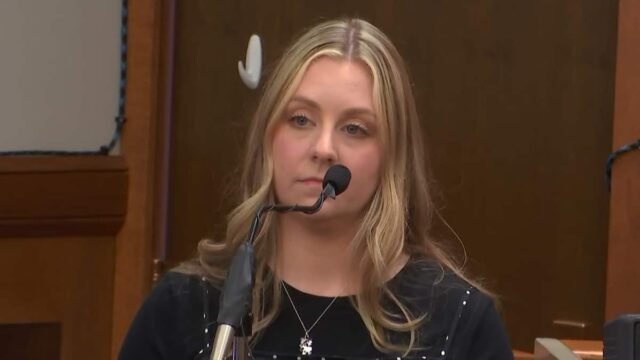 Abby Zwerner, a professora americana que foi baleada e ferida na sala de aula por um aluno de seis anos, testemunhou quinta-feira em Newport News, Virgínia, como parte de um processo civil de US$ 40 milhões contra o ex-diretor assistente da Escola Primária Richneck.