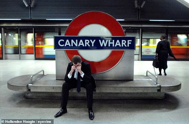 Um banqueiro na estação de Canary Wharf em 12 de setembro de 2008, em plena crise financeira