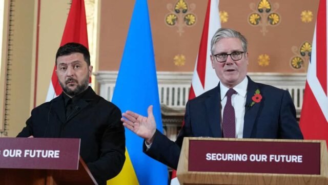Keir Starmer, que lidera uma coligação com o presidente francês Emmanuel Macron, disse que os aliados de Kiev estão “determinados” a intensificar a pressão sobre Vladimir Putin “do campo de batalha à economia de guerra”.