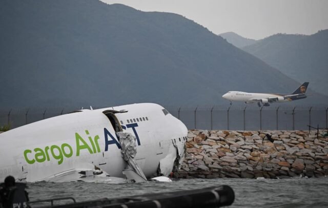 Steven Yiu, gerente geral de operações aeroportuárias da Autoridade Aeroportuária de Hong Kong, disse que o avião de carga dos Emirados Árabes Unidos “deixou a pista norte ao pousar e bateu na cerca e caiu no mar por volta das 4h, horário local”.