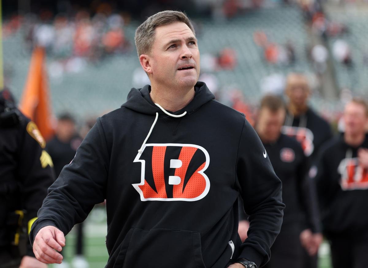 O técnico do Cincinnati Bengals, Zac Taylor, após um jogo contra o Arizona Cardinals no Paycor Stadium. Fotos de Joseph Maiorana-Imagn