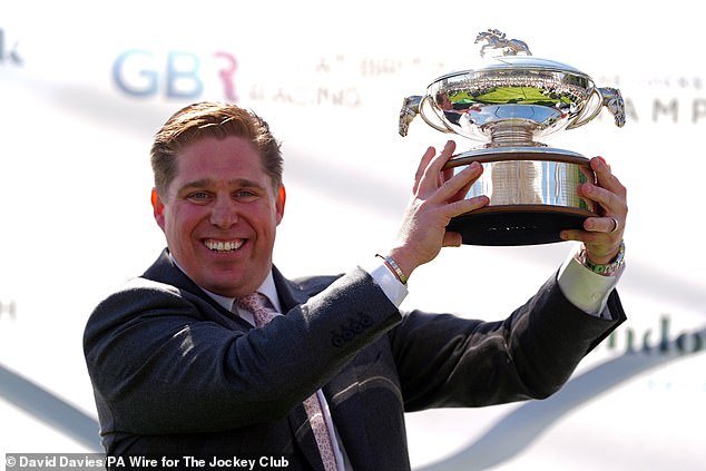 Dan Skelton com o Troféu de Treinadores Britânicos em Sandown ontem