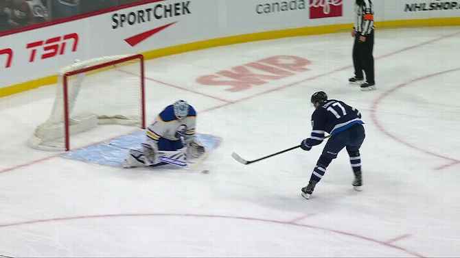 Ukko-Pekka Luukkonen faz uma grande defesa contra os Jets