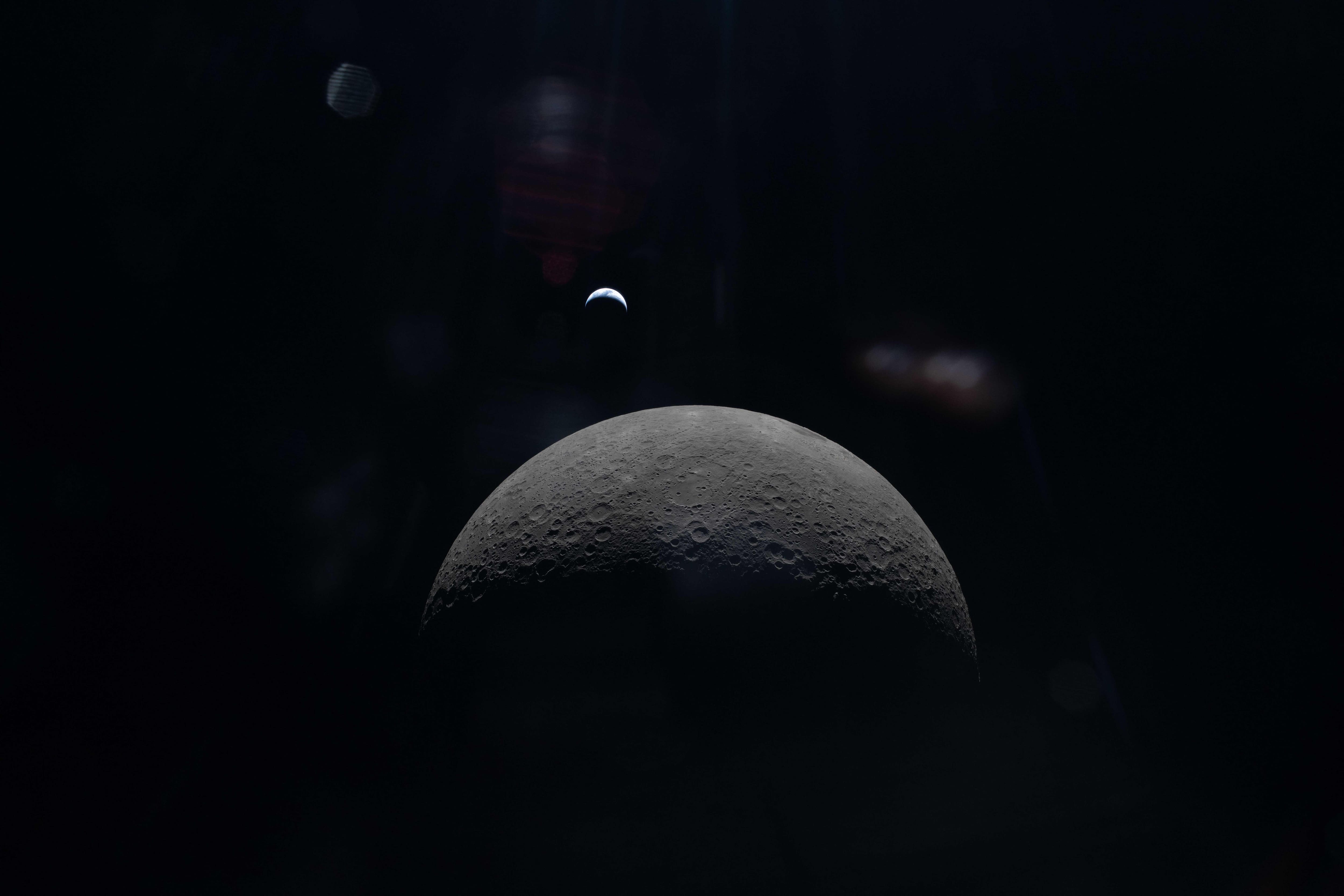 Passando por trás do lado oculto da Lua, os astronautas observaram de uma altitude sem precedentes de 6.500 km, até então visível apenas para sondas; Os precursores da Apollo voaram apenas cerca de cem quilómetros sobre a estrela.