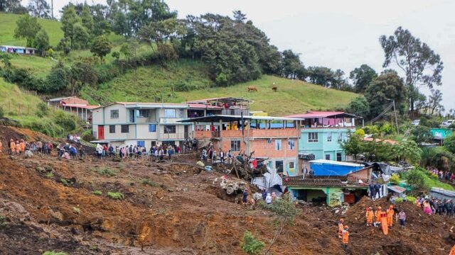 Nas imagens compartilhadas pelo governo, é possível ver um grande deslizamento de terra e escavadeiras, equipes de resgate, cães de resgate e moradores locais ao seu redor.
