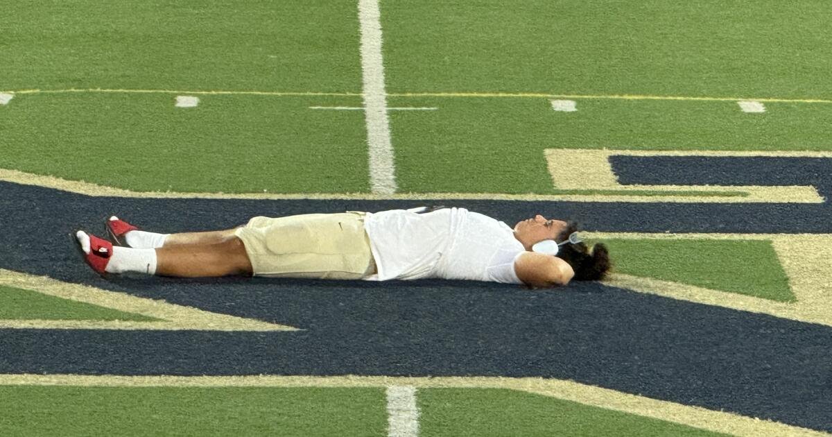 Faltam mais de duas horas para o time de futebol americano Sherman Oaks Notre Dame jogar um jogo de playoff da Seção Sul, e há um adolescente grande deitado de costas na linha de 50 jardas com fones de ouvido. Samson Fatu, de 1,80 metro e 305 libras, usa a grama para todos os climas como sua “cama Sleep Number”.