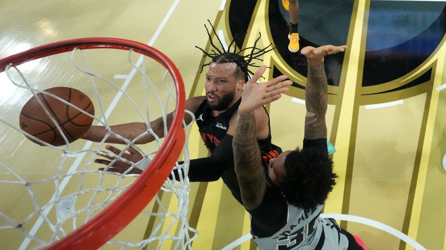 “Tyler Kolek, nós lutamos para marcar. Nós sabemos (Spurs), eles vão derrubar sua defesa quando você tocar na tinta. Dissemos aos nossos rapazes, continuem movendo a tinta, tentem borrifar. Continuem movendo a tinta, tentem borrifar. E Tyler entrou e fez dupla com Jalen (Brunson) e fez um ótimo trabalho na pintura e nos pulverizou. três. E então, defensivamente, ele foi ótimo.