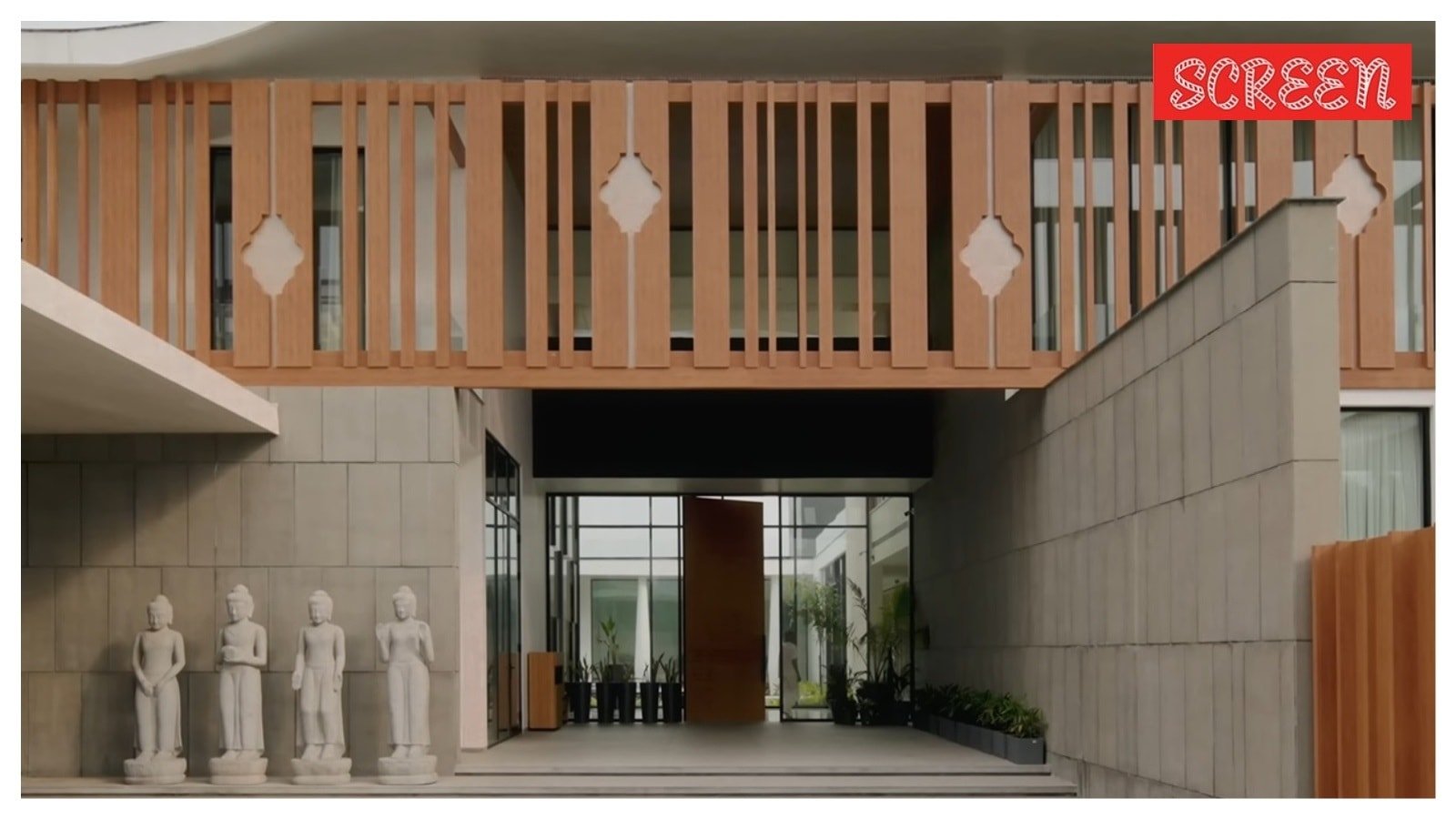 Um quarteto de estátuas budistas monolíticas no estilo Angkor guarda o saguão de entrada, que segue o tema de Buda. Com telhados planos, plantas fluidas e decoração escassa, o imóvel incorpora diversos elementos da arquitetura moderna. Mas é também uma celebração da tradição e da cultura, já que os móveis de meados do século da sala foram importados da China.