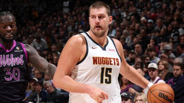 Julius Randle e Anthony Edwards marcaram 26 pontos cada, mas o quarteto de mais de 20 pontos do Nuggets liderado por Nikola Jokic derruba o Timberwolves em Minneapolis.