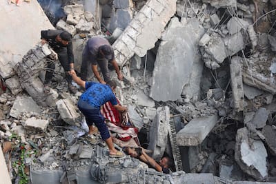 Durante toda a noite em Khan Younès, equipes da Defesa Civil com coletes laranja varreram salas e tendas cobertas de escombros com lanternas, segundo imagens da AFPTV.