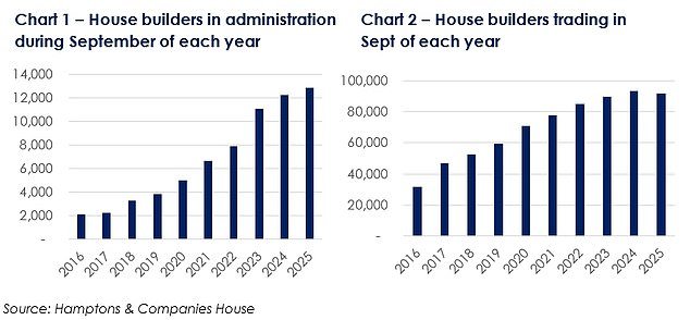 Quase três quartos das construtoras que expiraram este ano foram criadas sob ajuda para comprar a ERA, de acordo com Hamptons.