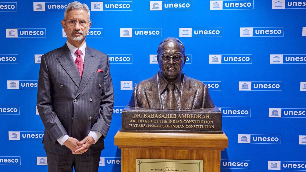 O Ministro das Relações Exteriores, S Jaishankar, na sede da UNESCO com o Dr. Ele prestou homenagem a Bhimrao Ambedkar. Ele também se encontrou com o Diretor-Geral da UNESCO, Khaled El-Enany, e sublinhou o compromisso da Índia em aprofundar as relações com o órgão da ONU.