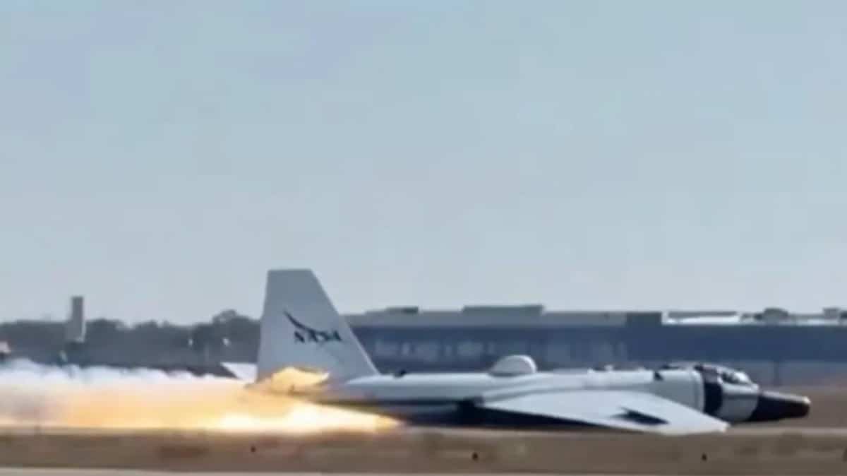Um avião de pesquisa da NASA pousou em uma pista sem trem de pouso, deixando para trás uma espetacular torrente de chamas. Apesar da cena lembrar um filme-catástrofe, ninguém ficou ferido.