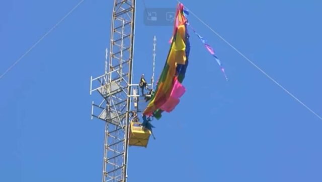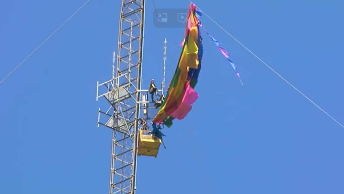 Uma impressionante operação de resgate foi realizada após um passeio de balão perto de Longview, Texas, no sábado. Ele colidiu com uma torre de telecomunicações de aproximadamente 270 metros de altura.