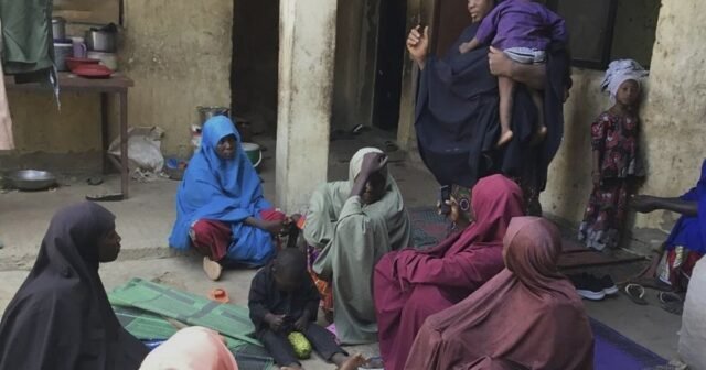 Um vídeo verificado pela AP mostra duas estudantes usando lenços cobrindo a cabeça, parecendo adolescentes, perdidas em pensamentos, cercadas por suas famílias e outros moradores. Os alunos do ensino médio na Nigéria geralmente têm entre 12 e 17 anos.