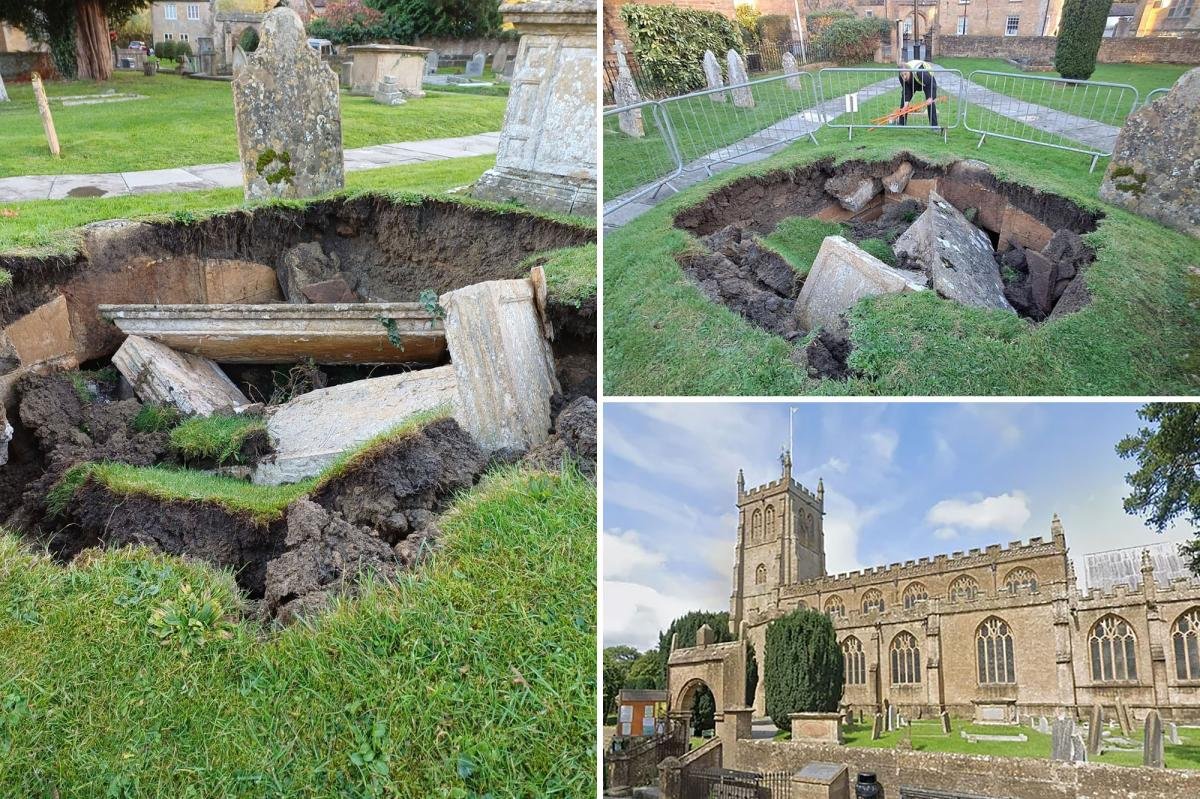 Uma falha estrutural incomum causou recentemente um colapso dramático, semelhante a um buraco, num cemitério histórico inglês, revelando um cemitério familiar com 300 anos de idade.