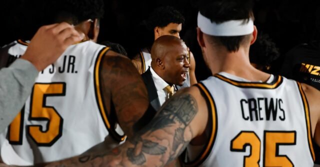 O técnico de basquete masculino do Missouri, Dennis Gates, fala com seu time antes do confronto dos Tigers contra o Prairie View A&M na segunda-feira, 17 de novembro de 2025, na Mizzou Arena, em Columbia.