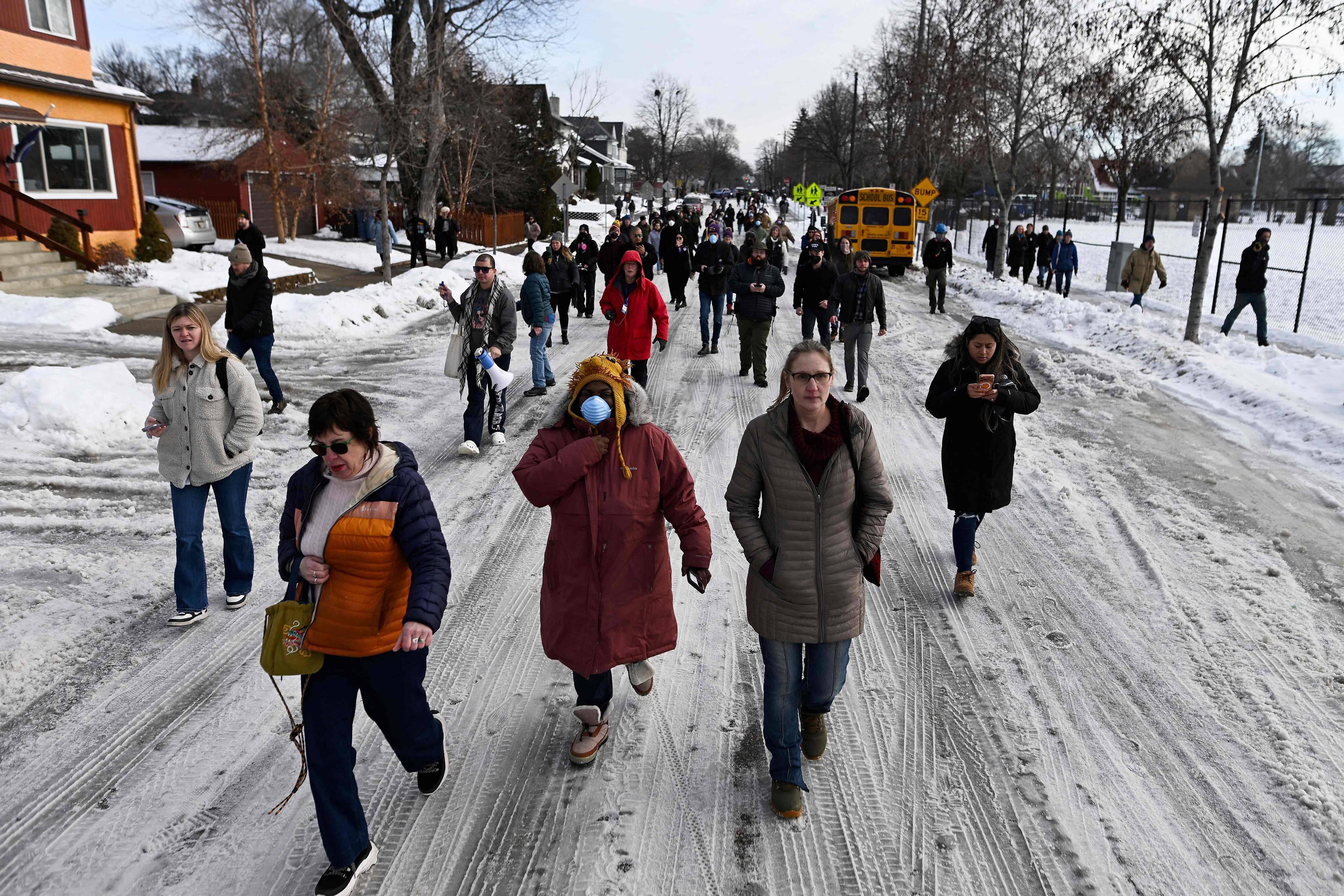 Um grande número de manifestantes reuniu-se em Minneapolis na tarde de quarta-feira para condenar a morte de uma mulher de 37 anos que foi atingida por pelo menos uma bala disparada por um agente de imigração (ICE).