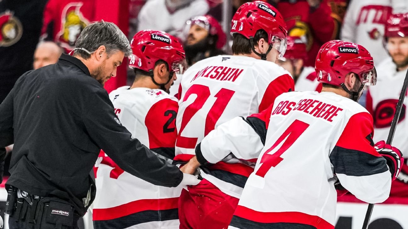 As emoções transbordaram no jogo 4, depois que o defensor dos Senators, Tyler Kleven, atropelou Nikishin com um grande golpe que deixou o defensor atordoado e precisando de ajuda para sair do gelo na vitória de seu time por 4-2. Ele saiu depois de patinar 11 turnos, cobrindo 5:16 do tempo no gelo. Após a vitória, o técnico do Carolina, Rod Brind’Amour, disse aos repórteres que “definitivamente parecia” que Nikishin sofreu uma concussão.