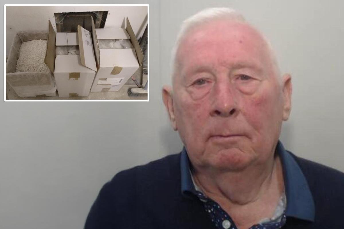 John Eric Spiby, 80 anos, que usou os seus ganhos na lotaria de 2010 para alimentar o seu império das drogas com o seu filho e outras duas pessoas, foi condenado a 16 anos de prisão. Polícia da Grande Manchester / SWNS