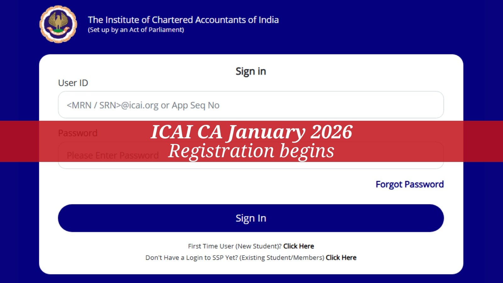 Início AUTO ICAI CA Janeiro de 2026 começam as inscrições para Inter, Foundation e...