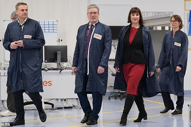 O primeiro-ministro e o chanceler visitaram as instalações de produção da Cares Power em Surrey em 2023, juntamente com a diretora técnica Caroline Hargrove (à direita) e o CEO Phil Caldwell (à esquerda).