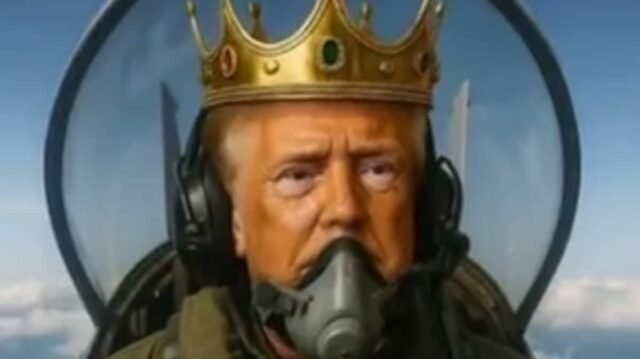 Num vídeo publicado no Truth Social no sábado à noite, ele é visto num avião de combate com o emblema “KING TRUMP”, uma referência direta ao canto “Não aos Reis” de protesto contra as suas políticas.