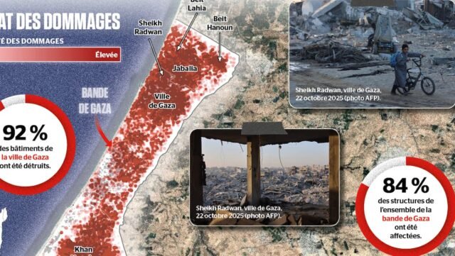 Depois de dois anos de guerra que deixou 68 mil pessoas mortas e Gaza em ruínas, países da Europa e do mundo árabe, bem como o Canadá e os Estados Unidos, estão empenhados em apoiar a reconstrução, cujo custo é estimado em 98 mil milhões de dólares canadenses. A ONU estima que 92 por cento da Cidade de Gaza foi destruída. No total, 84% da faixa foi destruída, resultando em escombros equivalentes a treze vezes o tamanho das pirâmides de Gizé. A reconstrução não começará com areia, mas com entulhos a serem removidos, o que tornará o trabalho ainda mais difícil.