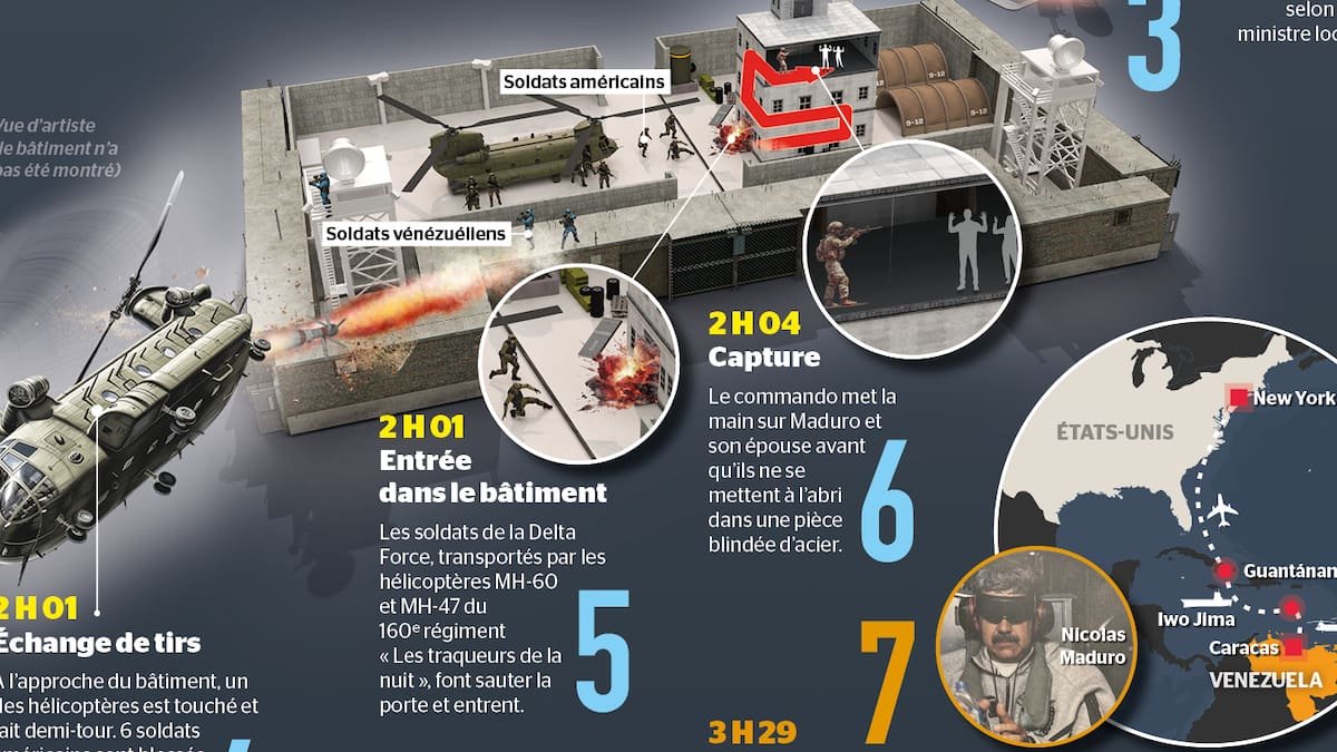 É preciso dizer que desde agosto agentes da CIA se infiltraram no país e drones monitoram seus movimentos, enquanto ele muda regularmente de local de residência. E em Kentucky, os comandos da Força Delta repetiram o processo de extração de dentro de uma réplica em tamanho real de um deles. Eles esperaram que Maduro chegasse ao lugar certo para atacar.