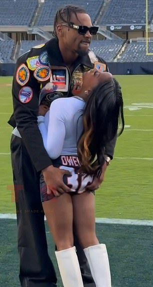 Em imagens compartilhadas por @TheShadeRoom, o segurança do Bears pode ser visto envolvendo Biles nos braços e apertando seu traseiro no Soldier Field, onde o Chicago acabara de vencer por 26-14 contra o New Orleans Saints.