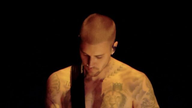 Entrando no palco mostrando um pouco de pele, ele dedilhou uma guitarra elétrica antes de cantar suas notas e pegar o microfone.