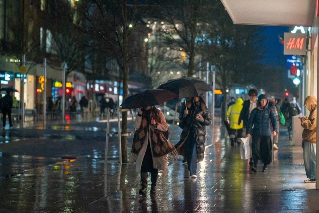 O Met Office emitiu avisos meteorológicos âmbar e amarelo que estão em vigor em todo o Reino Unido – com neve também caindo no Nordeste da Inglaterra.