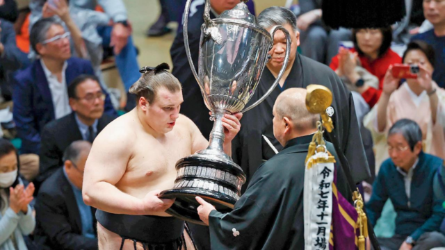 O lutador de sumô ucraniano Danylo Yavhusishyn venceu seu segundo torneio consecutivo no domingo. O jogador de 21 anos, que fugiu da guerra na Ucrânia há três anos, venceu o Grande Torneio de Sumô de Ano Novo em Tóquio e conquistou o segundo campeonato de sua carreira.