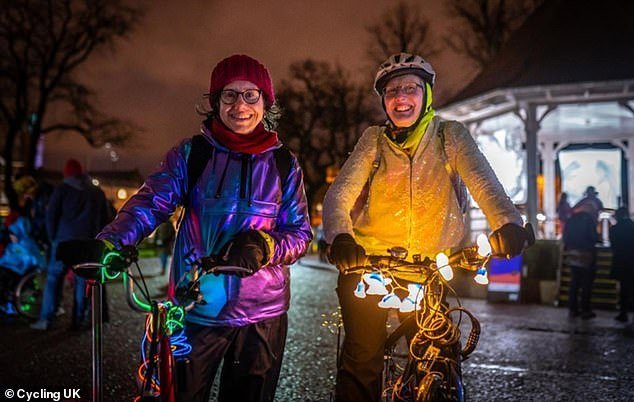 Os ciclistas participantes de todo o país são incentivados a “iluminar a noite” adicionando luzes adicionais às suas bicicletas.